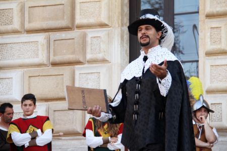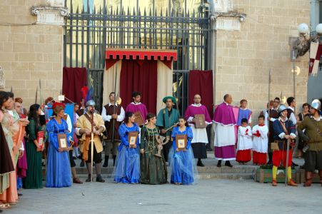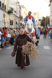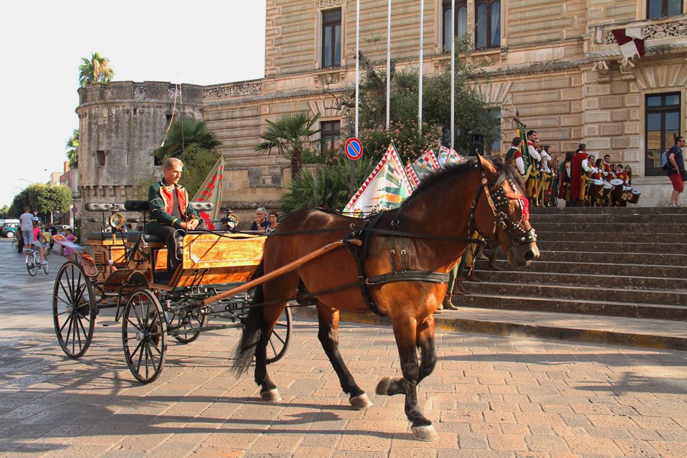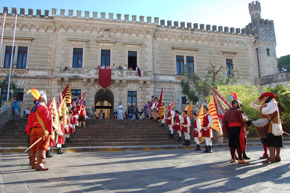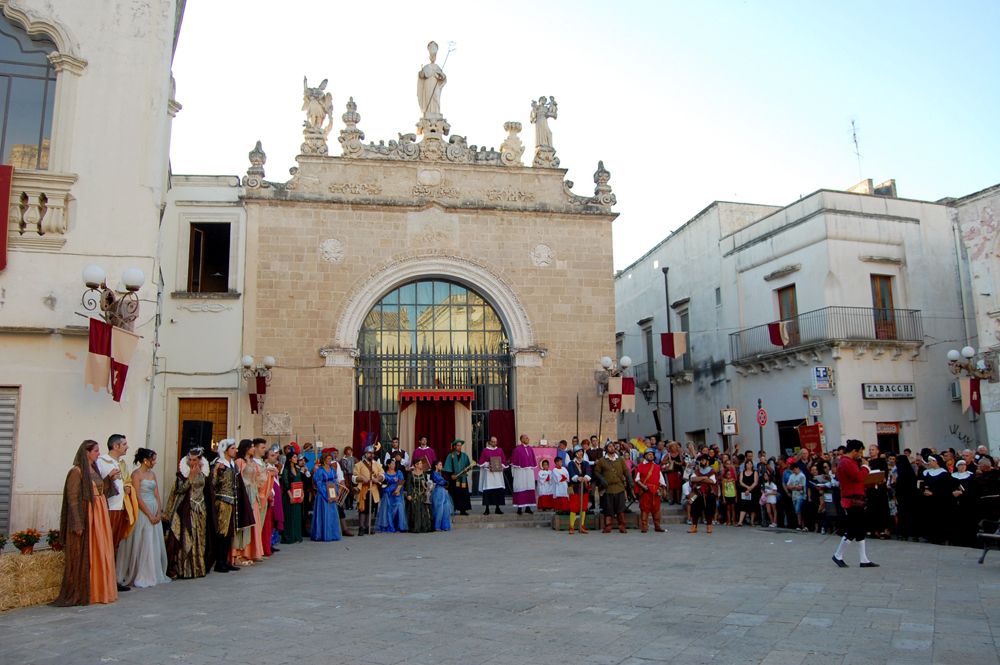 Proprio per evitare questo gli Amici Museo Porta Falsa hanno ideato e riportato in vita un pezzo di storia della Nardò che ci ha preceduto. LA CAVALCATA STORICA E FIERA DELL'INCORONATA. Si tratta di una rievocazione storica con personaggi in costume, di quanto avveniva realmente nel tessuto urbano Neretino già a partire del 1397. Per la gestione della fiera dell'Incoronata da parte del vescovo veniva investito un canonico come Magister Nundinarum o Mastro Mercato, la cui giurisdizione aveva la durata di nove giorni consecutivi, a partire dal primo sabato di Agosto, e riguardava qualsiasi attività cittadina sia civile che religiosa. Il primo elemento storico è dato dal privilegio concesso da re Ludovico nel 1397, relativo, appunto, alla gestione e alle modalità della FIERA. Pur essendoci documentazione dal 1509 al 1787, per avere un idea organica bisogna rifarsi alla visita pastorale del Vescovo Antonio Sanfelice (1708-1736). In questa è riportata integralmente una lettera-relazione, scritta nel 1638 dal Canonico Cosimo Mega al Vescovo Fabio Chigi (1635-1652) allora vescovo di Nardò non in sede e futuro Papa Alessandro VII.