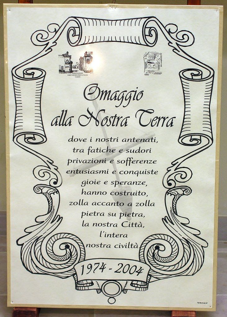 Ebbene proprio in questo ambito si inserisce l'attività dell'associazione "Amici Museo di Porta Falsa", che, partendo da Nardò, sua sede, e guardando all'intero Salento, si è sempre misurata con il grande patrimonio della tradizione, certosinamente ricercato, attentamente raccolto, analiticamente studiato ed entusiasticamente proposto. Dal mondo del lavoro, soprattutto agricolo, con gli attrezzi e i prodotti a quello casalingo, in modo specifico l'arte culinaria, e a quello letterario con i dittèri e i proverbi.
