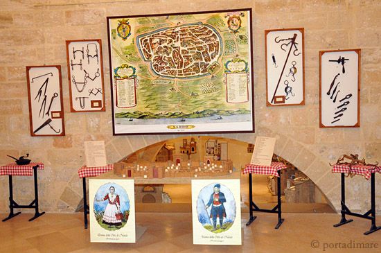 Il Museo di suddivide in 5 grandi sezioni: quella Contadina, quella delle Arti e dei Mestieri, quella della Vita Domestica, quella delle Tradizioni Popolari e quella della Nardò Sparita, una collezione di circa 40 plastici che riproducono monumenti e chiese della Nardò che non esiste più.